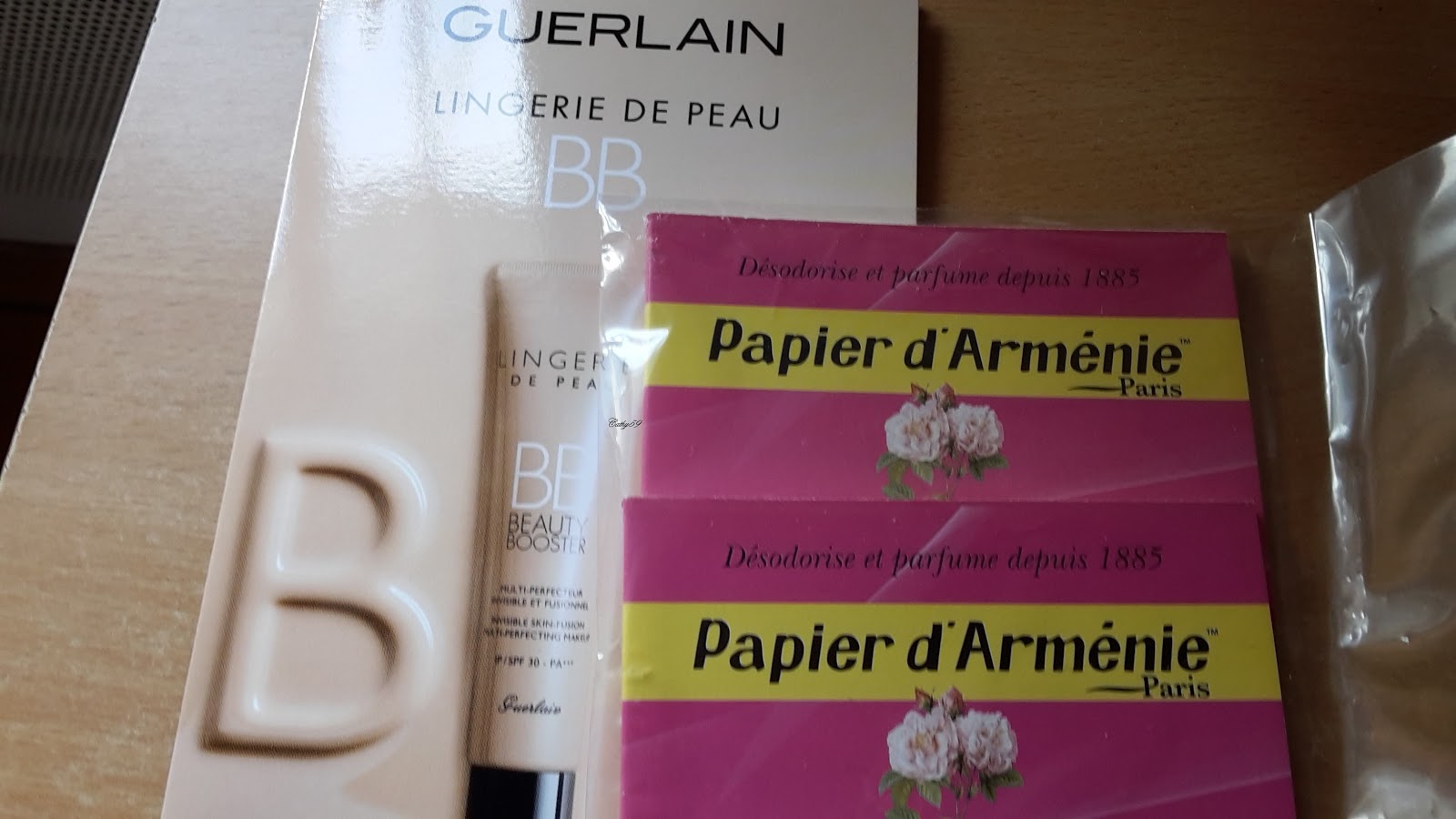 Un échantillon de BB crème de chez Guerlain et deux carnet de papier d'Arménie